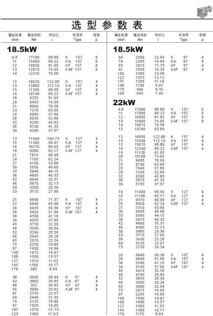 選型參數(shù)表18.5kW,22kW