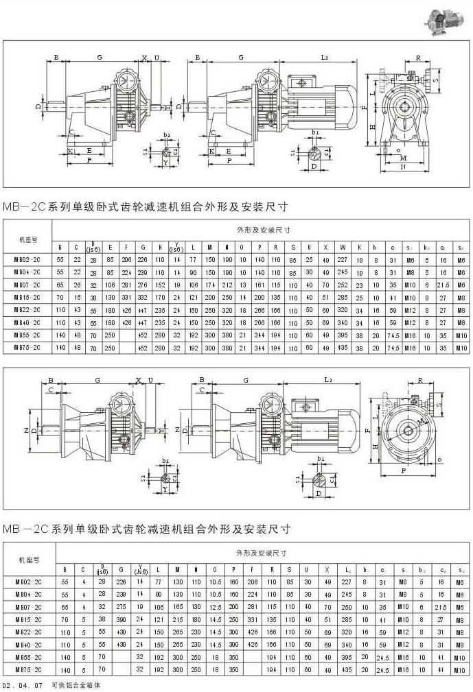 MB-2C系列單級臥式齒輪減速機(jī)組合外型及安裝尺寸???MB-2C系列單級臥式齒輪減速機(jī)組合外型及安裝尺寸???